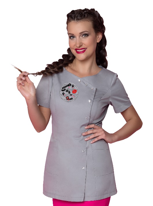 Najnowszy fartuszek kosmetyczny w wersji glamour, to propozycja zarówno dla gabinetów kosmetycznych jak i medycznych. Okrągły dekolt podkreśla i wydłuża szyję. Wygodne rękawki nie krępują ruchów podczas wykonywanych zabiegów. Ten nietuzinkowy fartuch kosmetyczny posiada także pojemne i bardzo praktyczne podczas pracy kieszonki. Tunika zapinana jest na błyszczące, diamentowe zatrzaski-cyrkonie. Bardzo łatwe w zapinaniu i rozpinaniu. Boczne zapięcie tego modelu dodaje klasy i szyku. Uniform jest idealnie taliowany i zgrabny przez co wysmukla kobiecą sylwetkę. Przepięknie dopasowuje się do każdej figury. Odzież kosmetyczna ma duży wpływ na profesjonalny odbiór Twojego salonu i gabinetu, więc nie zwlekaj i bądź Królową w pracy! :)