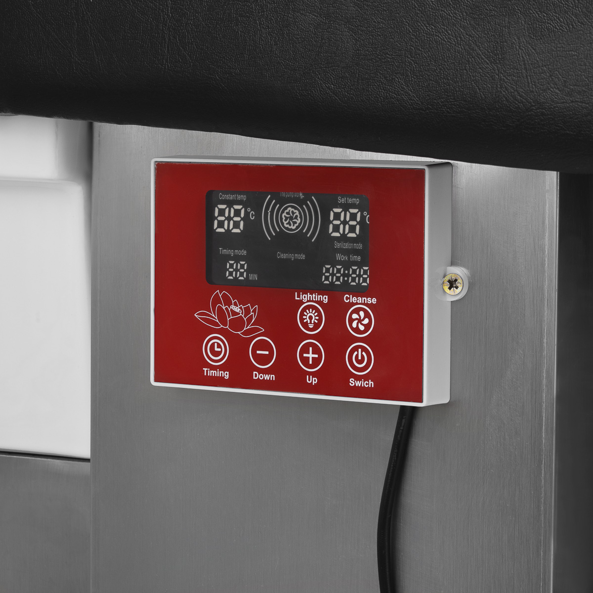 Intuicyjny panel dotykowy umożliwia pełną kontrolę nad parametrami zabiegu, zapewniając wygodę użytkowania. Umożliwia regulację czasu pracy oraz temperatury wody, a także monitorowanie ich aktualnych wartości. Dzięki wbudowanemu wyświetlaczowi możesz w każdej chwili sprawdzić, ile czasu urządzenie już pracuje. Panel pozwala również na włączenie funkcji światłoterapii, czyli podświetlenia misy, tworząc atmosferę relaksu i luksusu. Dodatkowo, urządzenie do terapii parowej wyposażone jest w pilota umożliwiającego wygodną obsługę na odległość.