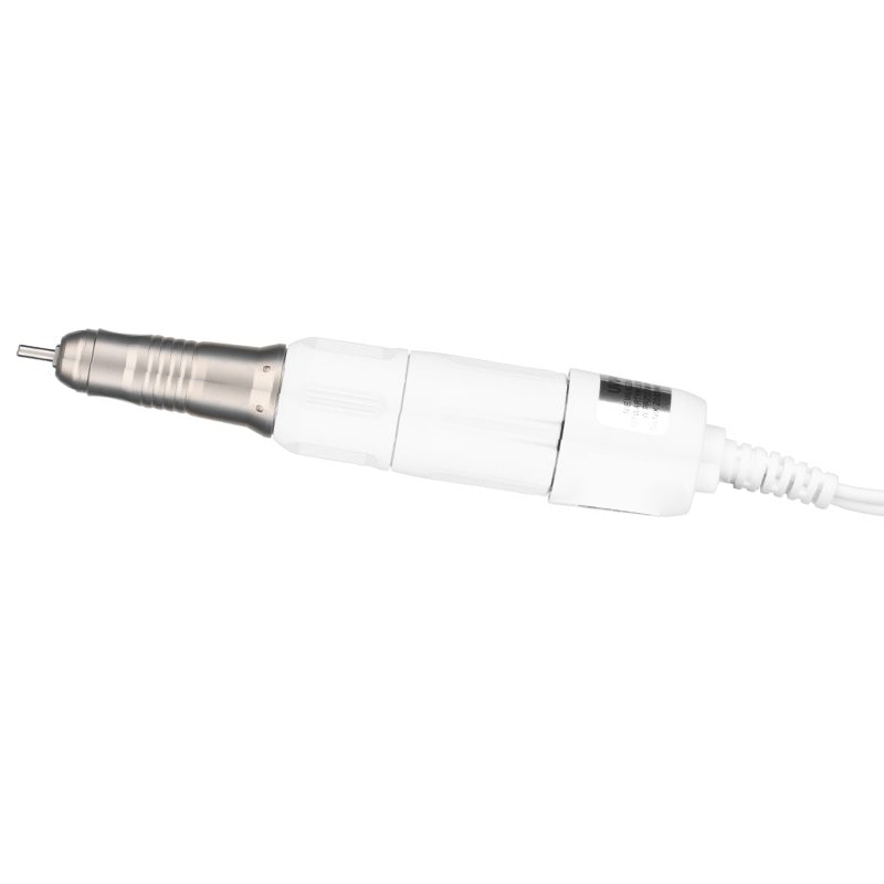Frezarkę tę możemy obsługiwać zarówno ręcznie, jak i nogą dzięki dołączonemu napędowi nożnemu. Bardzo dobrej jakości głowica wyróżnia się momentem obrotowym 2,7 Ncm oraz prędkością w zakresie od 0 do 30 tysięcy obrotów. Do zestawu dołączony został uchwyt na głowicę, dzięki któremu możemy w każdej chwili odłożyć ją podczas zabiegu w bezpieczne i stabilne miejsce.