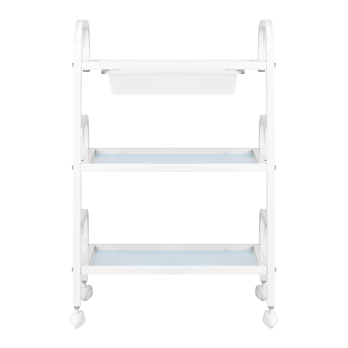 Pomocnik kosmetyczny Basic 121 to funkcjonalny mebel, który doskonale sprawdzi się w każdym salonie kosmetycznym czy gabinecie SPA. Lekka konstrukcja ułatwia codzienną pracę, a trzy szklane półki zapewniają wygodne przechowywanie kosmetyków, akcesoriów i sprzętu. Dodatkowa kuweta pod górną półką umożliwia szybki dostęp do najczęściej używanych narzędzi. Minimalistyczny design dodaje wnętrzom profesjonalnego charakteru.