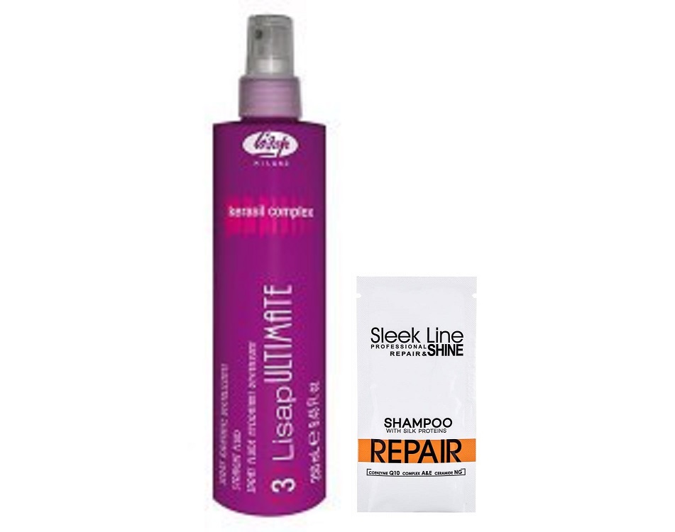Zestaw Lisap Spray Do Prostowania Włosów + Maska SLEEK LINE + Szampon SLEEK LINE